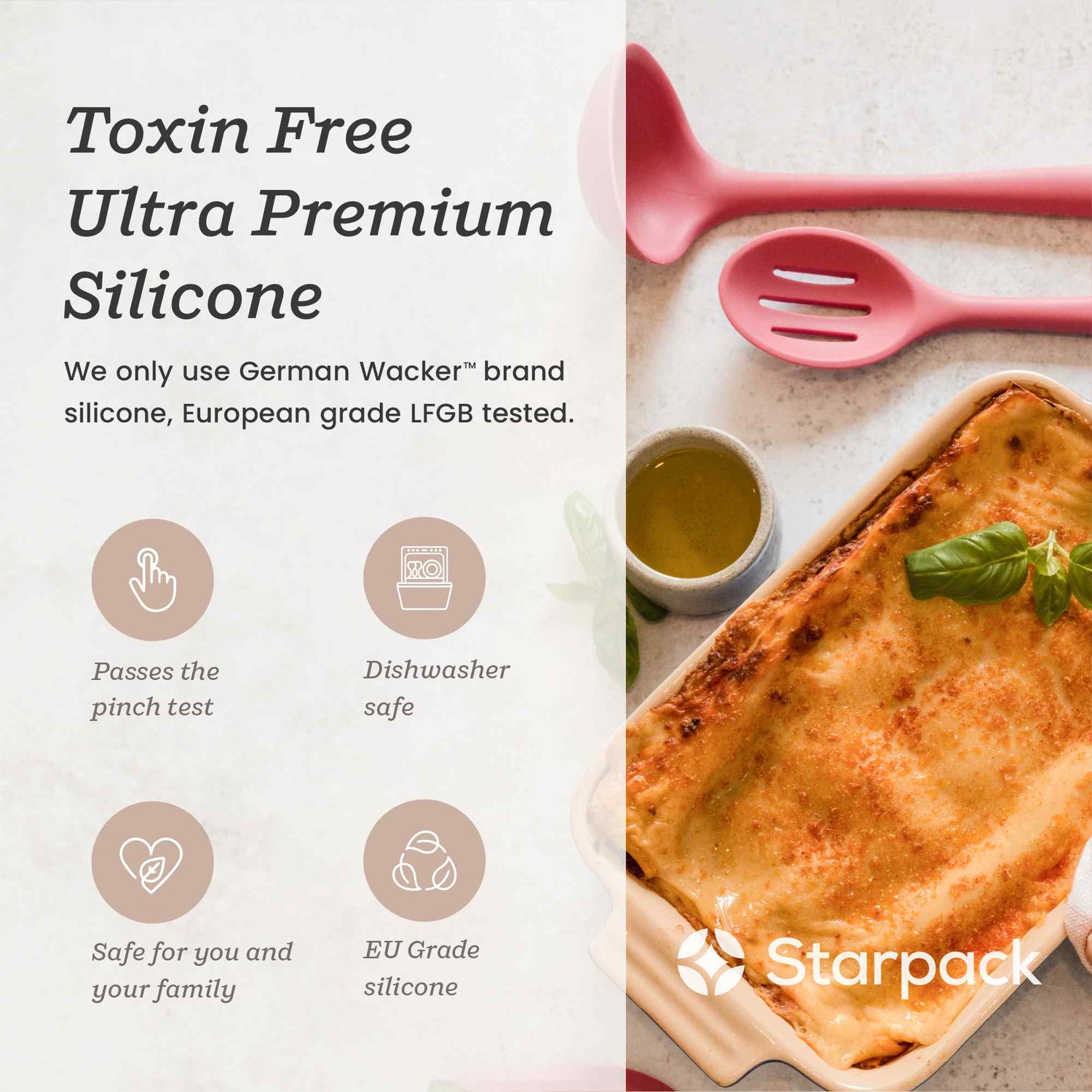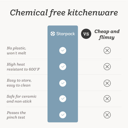 We use it as the primary material in our kitchen utensils because it is incredibly stable, high heat resistant to 600°F, and free of harmful toxins and chemicals like BPA, BPS, or phthalates.