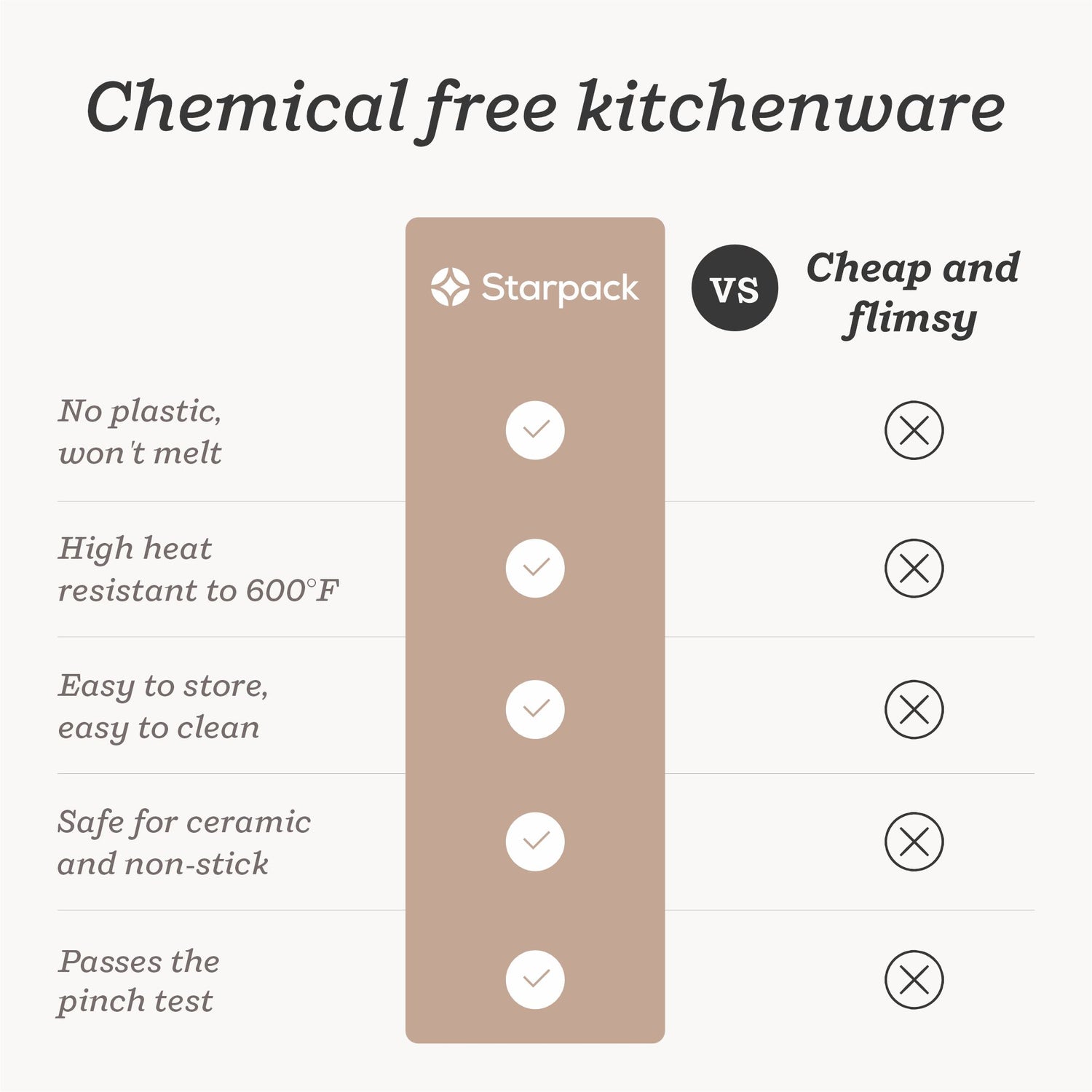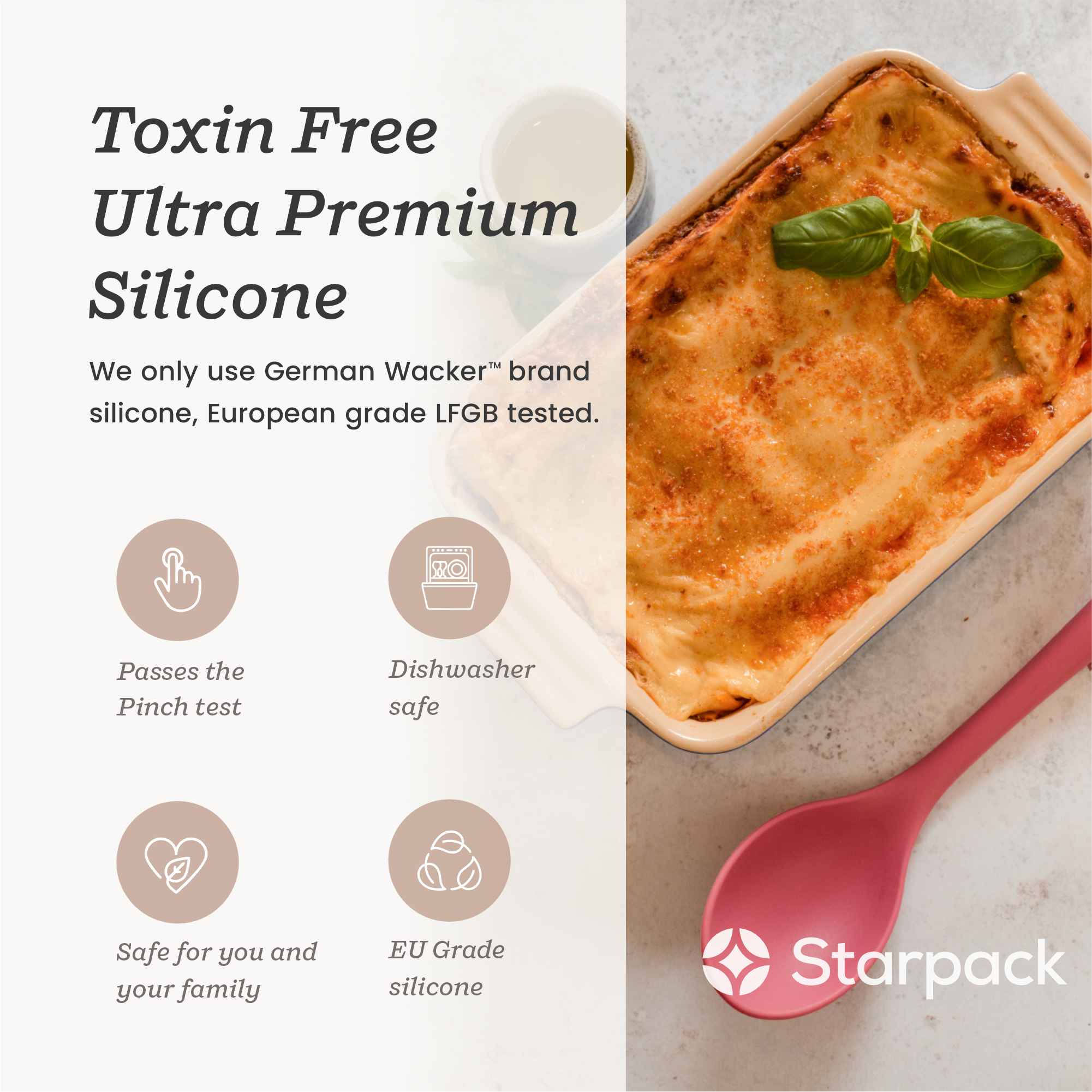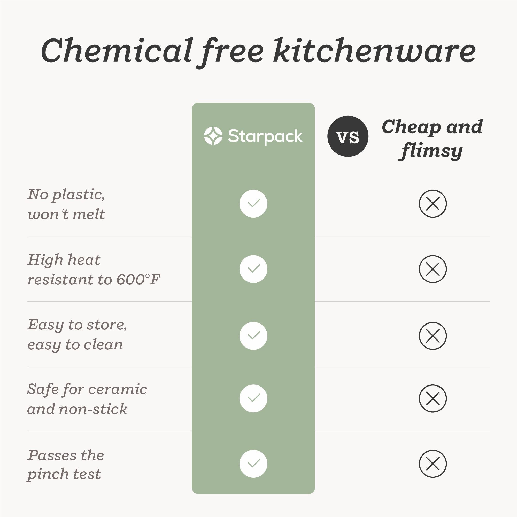We use it as the primary material in our kitchen utensils because it is incredibly stable, high heat resistant to 600°F, and free of harmful toxins and chemicals like BPA, BPS, or phthalates.